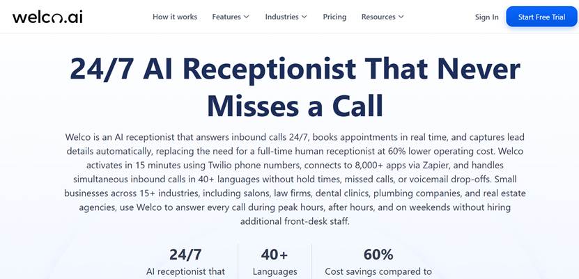 What does it solve for SMBs? Welco AI targets small shops that cannot justify a full answering service but are tired of missed calls. Its pitch is simple: plug‑and‑play AI that answers calls, handles basic questions, and passes on messages.