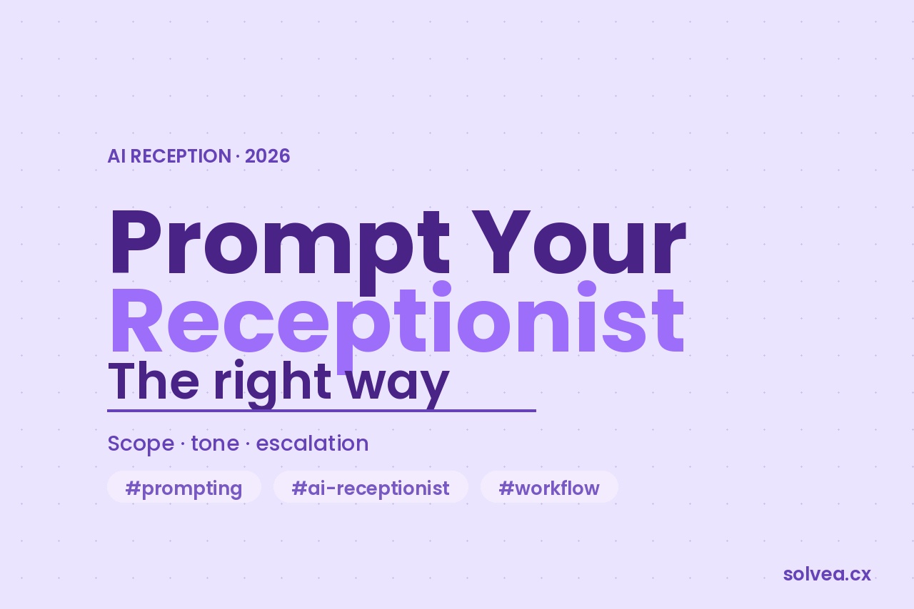 Solvea's AI Receptionist can answer calls, gather context, and route conversations intelligently across phone, chat, and email.