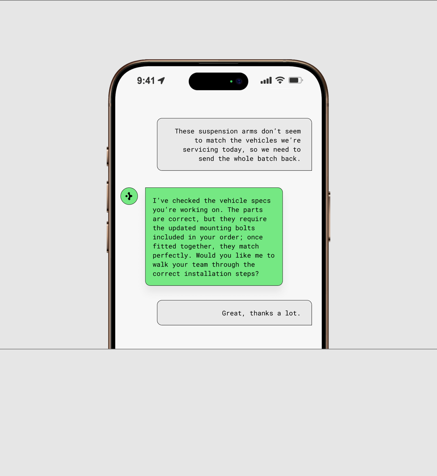 By preventing wrong-part orders and resolving technical issues early, Solvea cuts unnecessary returns and delivers a smoother, more confident buying experience.