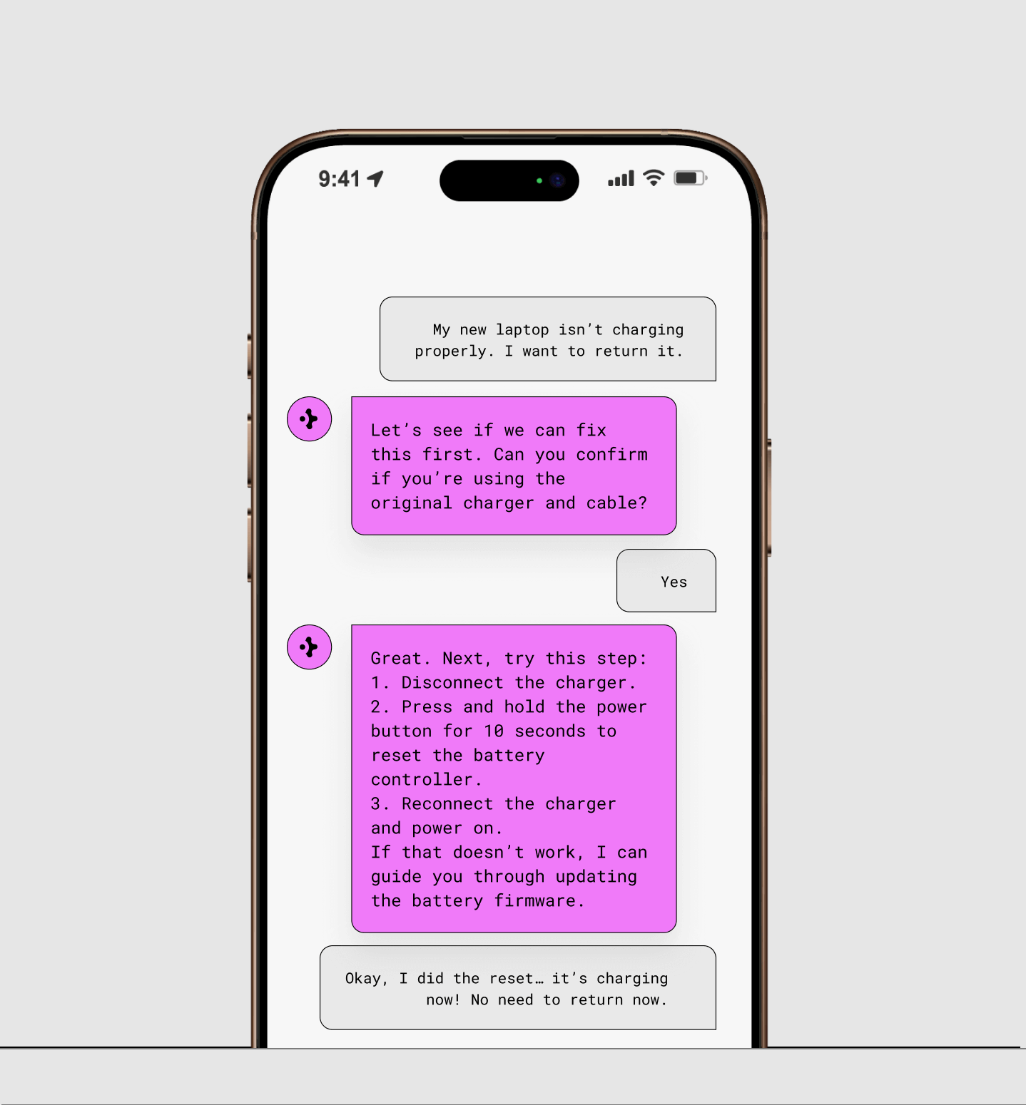 Before customers submit a return, Solvea provides AI-driven, context-aware guidance to resolve technical issues quickly. From firmware updates to configuration fixes, Solvea reduces unnecessary returns, boosts first-contact resolution, and delivers a smoother, more satisfying customer experience.